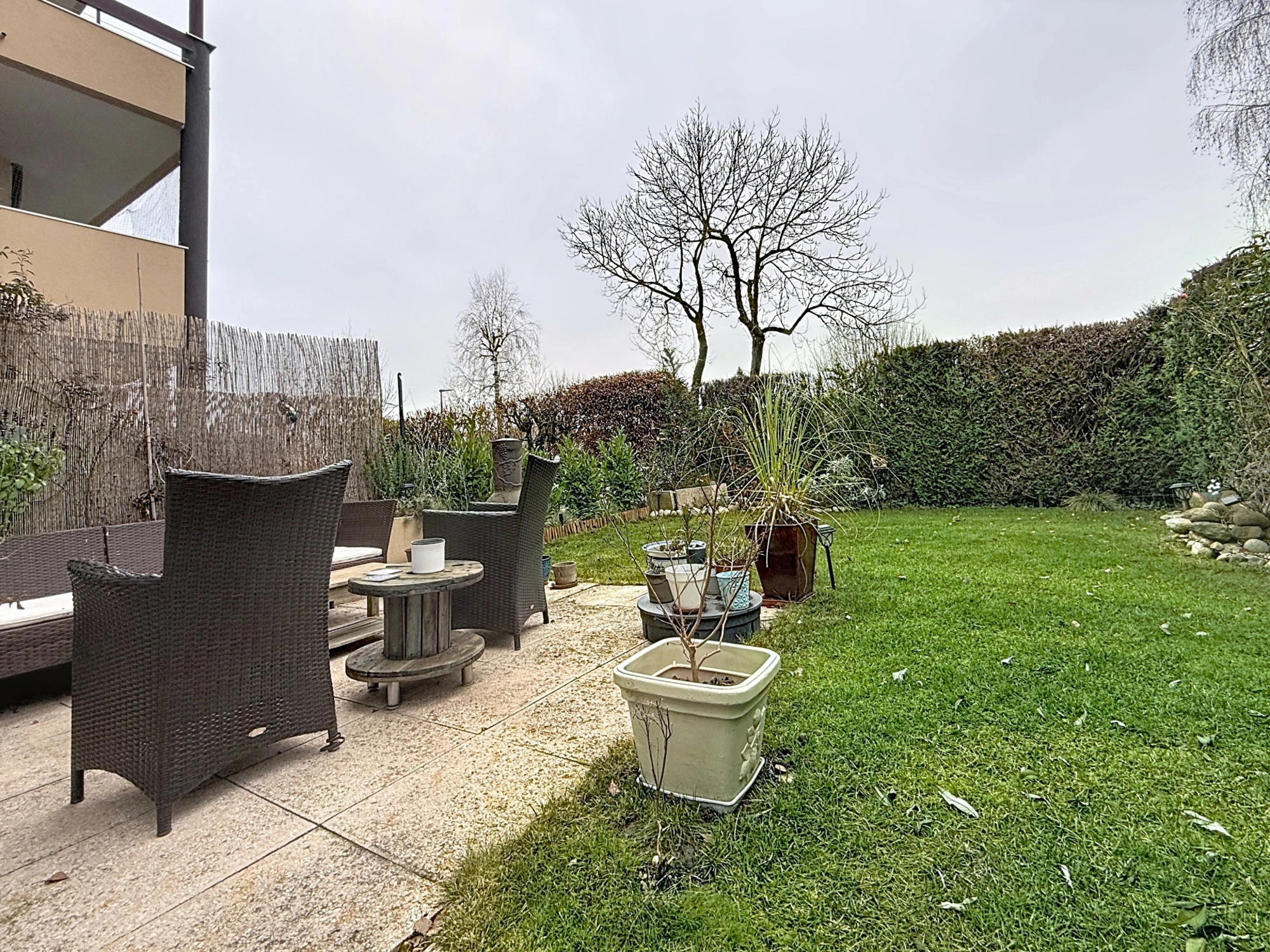 FERNEY-VOLTAIRE. Located on the ground floor, this spacious apartment of approximately 135 m² offers a particularly pleasant living environment, with a lovely private garden, in the immediate vicinity of the town center, primary school, shops, bus stop, and the future tram line. The fully renovated apartment is situated within a secure, gated residence built in 1988, benefiting from a green setting highly valued by families. Residents enjoy a large wooded park, a tennis court, a children's playground, and ample parking. The interior spaces are generous and well laid out. The living area comprises a living room with an open-plan kitchen of over 40 m², extended by a veranda offering a welcoming extension, ideal for a dining area, an office, or an additional living room. The apartment features three bedrooms, including a spacious master suite with an en-suite shower room and office space. A bathroom with a laundry area completes the sleeping quarters. Ample built-in storage provides real everyday convenience. The property is sold with a cellar and a private garage. Heating is electric, and the energy performance certificate is rated D. This apartment is a rare find due to its size, surroundings, and location, making it ideal for a family seeking comfort and proximity to all amenities.
