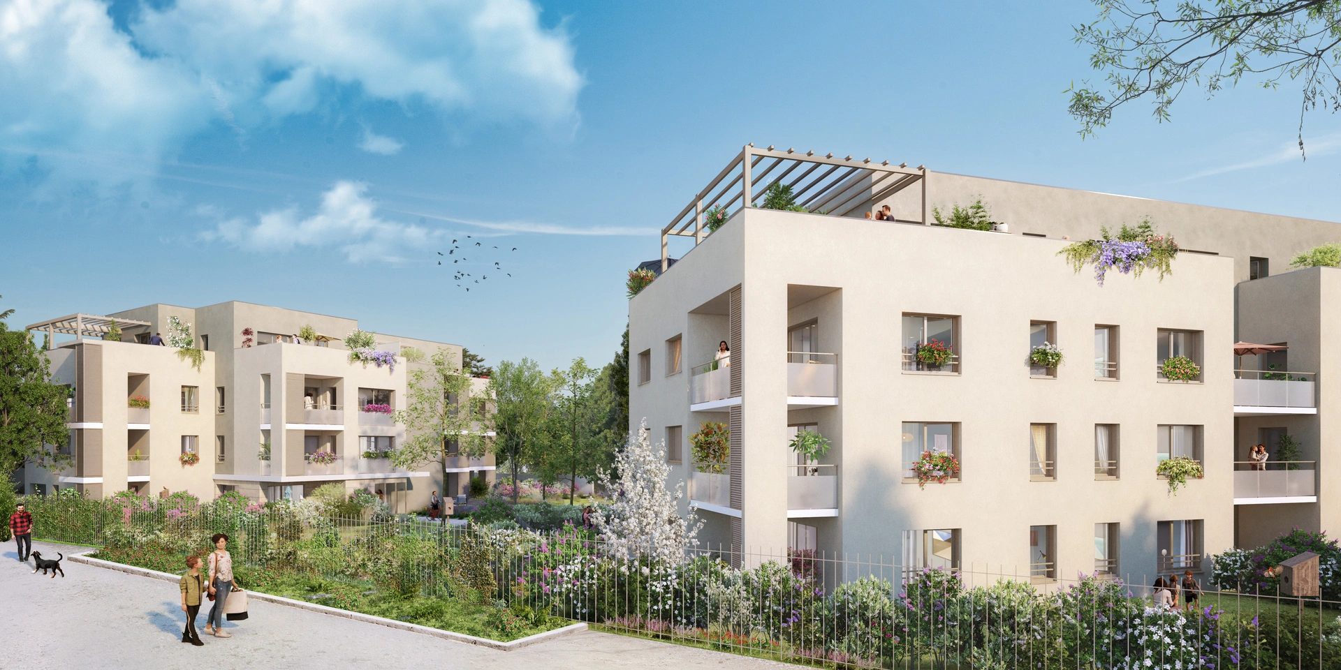 Les pièces de vie s’ouvrent sur une loggia ou un balcon, une terrasse plein ciel ou un agréable jardin privatif. Quelques privilégiés profiteront de belles vues dégagées sur les paysages environnants.