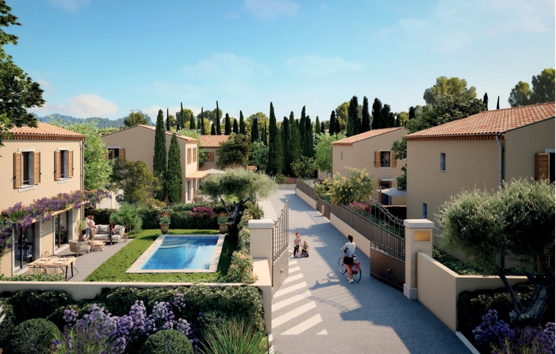 Ventabren s’affirme comme l’une des communes les plus recherchées du Pays d’Aix. Son vieux bourg perché, ses bâtiments remarquables et ses paysages lui confèrent une identité provençale forte et authentique. Au coeur du quartier de l’Héritière, la résidence prend place dans le nouveau coeur de ville de Ventabren, entre la rue Raymond‑Normand et l’avenue du Mas des Platanes. La résidence reprend les codes de la Provence, avec ses toitures en tuiles, ses façades aux tons naturels et ses volumes sobres et raffinés. Entourée d’espaces verts soigneusement aménagés, la résidence dégage une atmosphère paisible, pleinement intégrée au domaine.