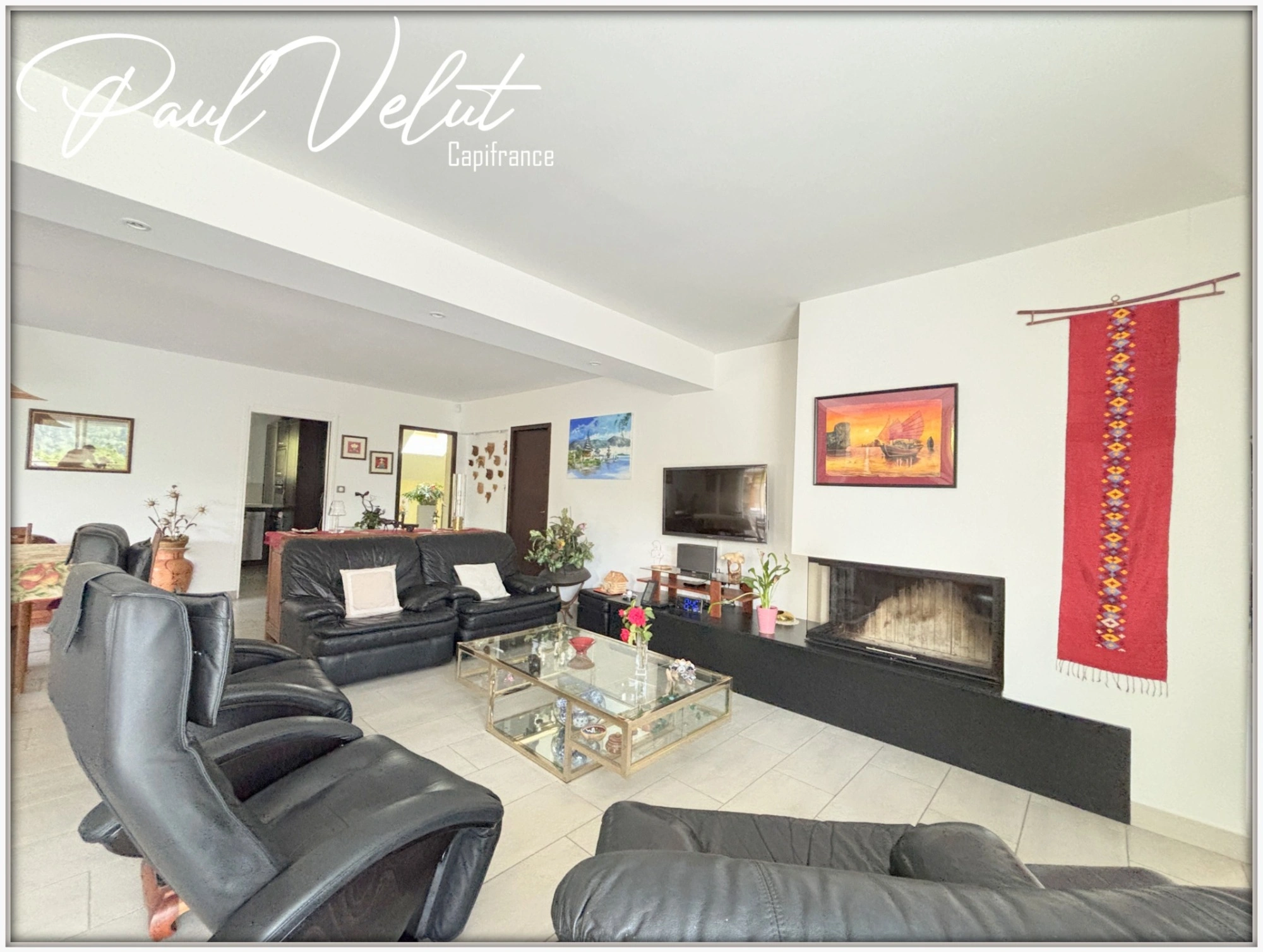 First floor: Kitchen, bright living room of 31 m², large living room with fireplace, all extended by a huge 109 m² terrace facing south and southwest with built-in barbecue. This level also houses an office and a master suite with shower room and dressing room.