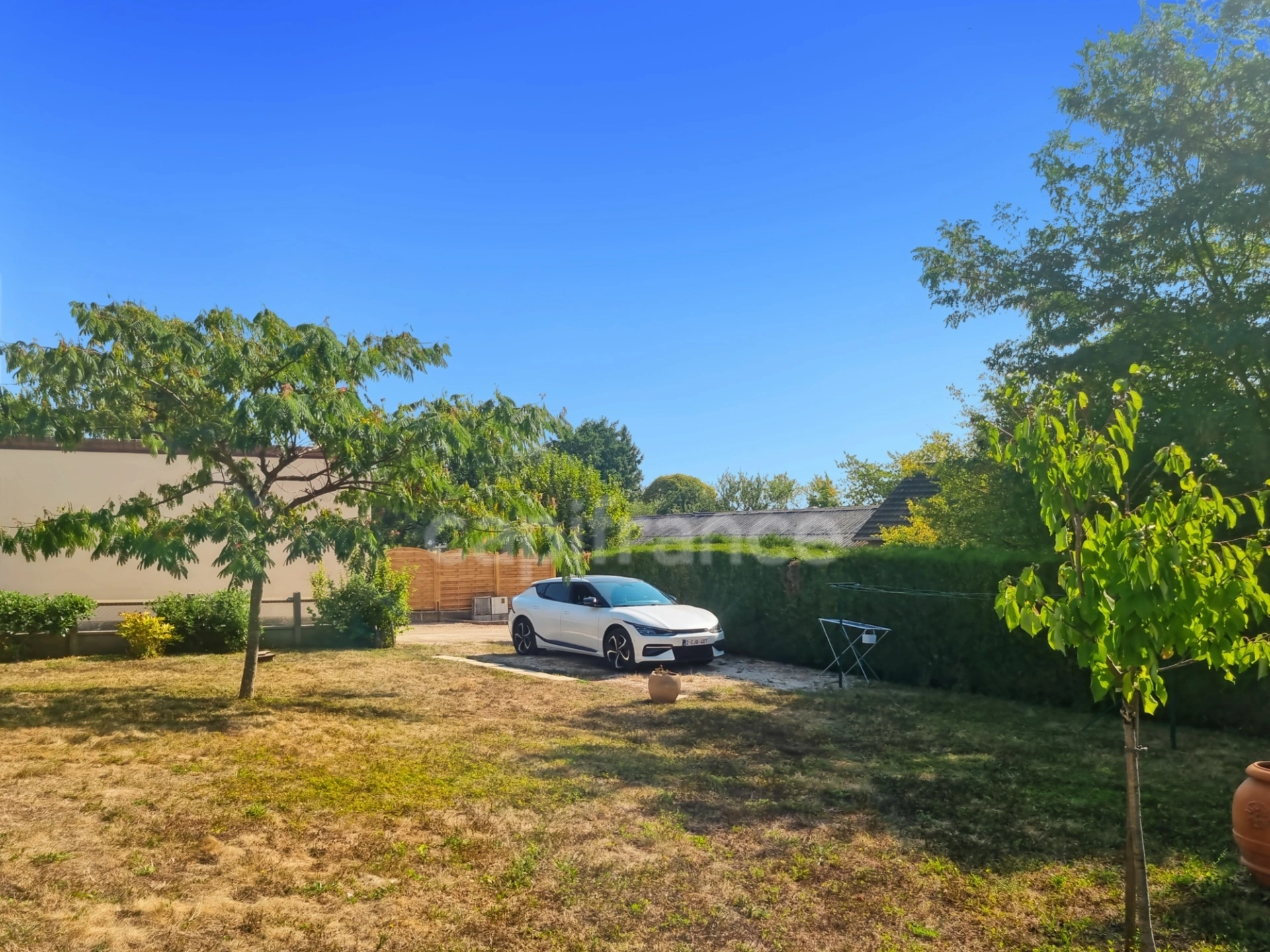 Coté extérieur le jardin clos et arboré et la terrasse vous permettrons de profiter des journées ensoleillées tout en restant en sécurité et intimité. Dans la cour il y a également la possibilité de stationner plusieurs voitures et/ ou un camping-car.
