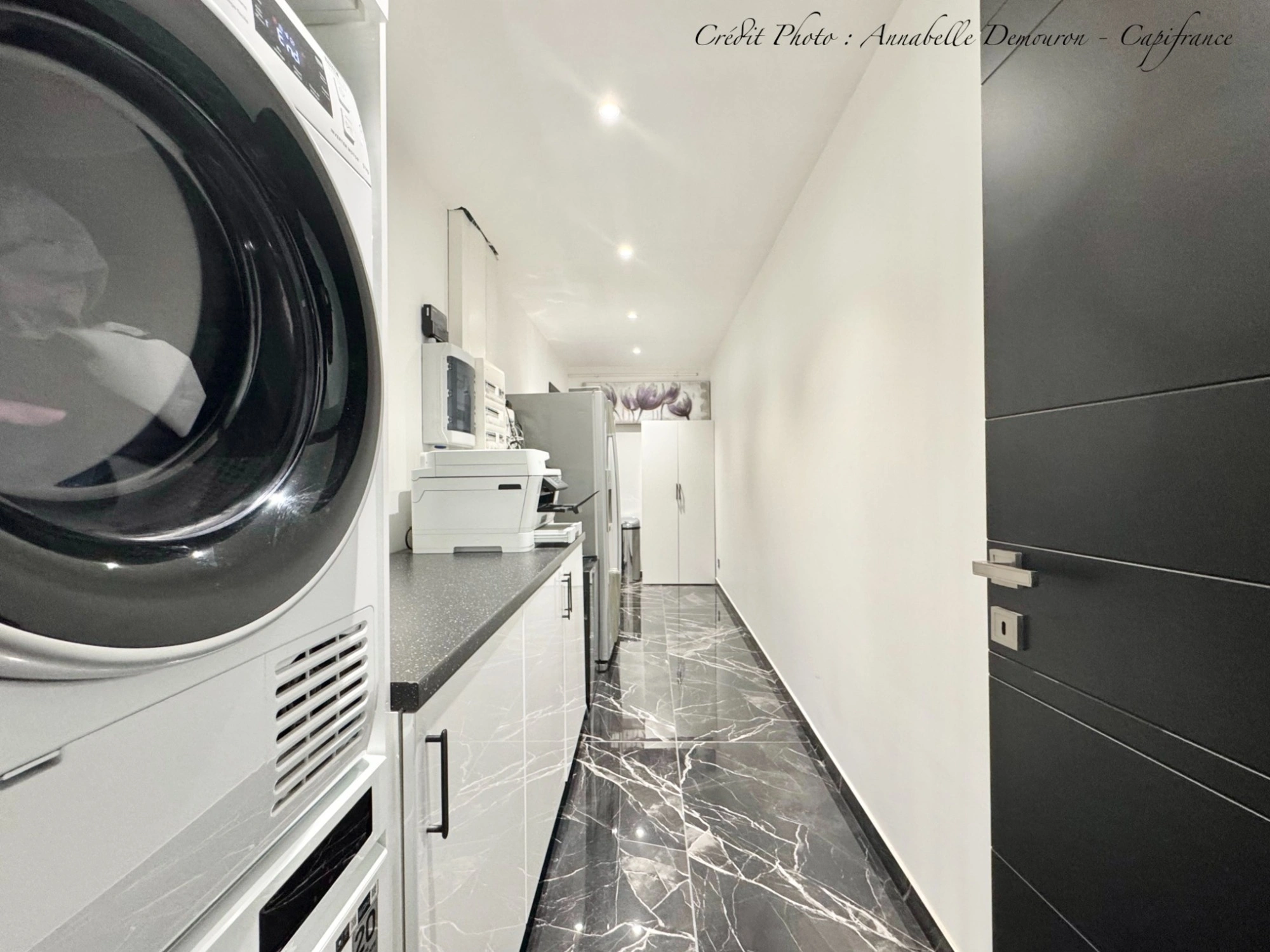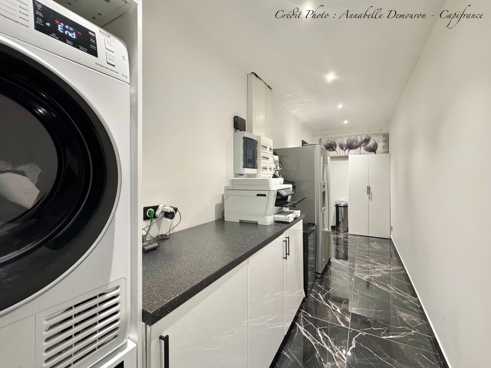 - Une grande buanderie / espace technique avec plan de travail, rangements et accès direct au garage.