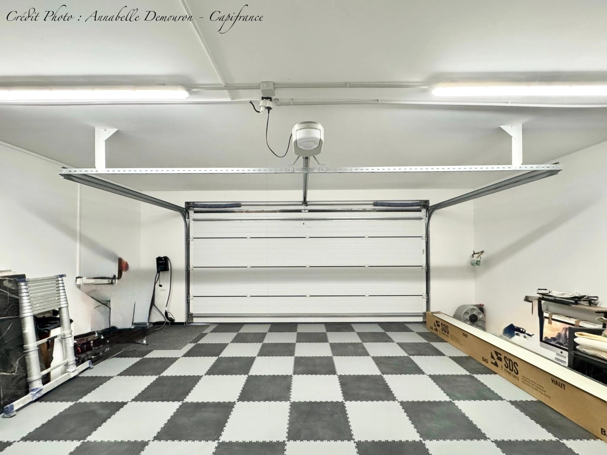- Un garage de 35 m², isolé, (sol en dalles PVC), porte motorisée.