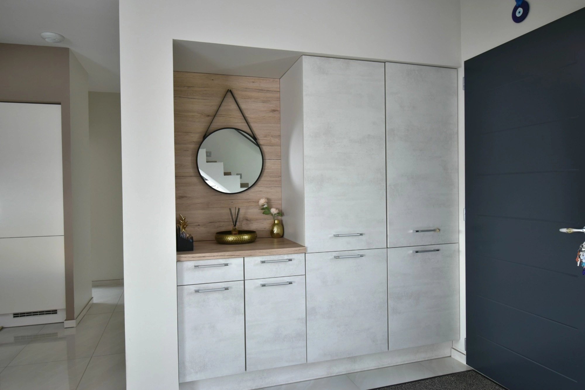 By a beautiful staircase you access the first floor where a hallway serves 3 spacious bedrooms all equipped with cupboards, a large bathroom with shower and bathtub, a toilet.