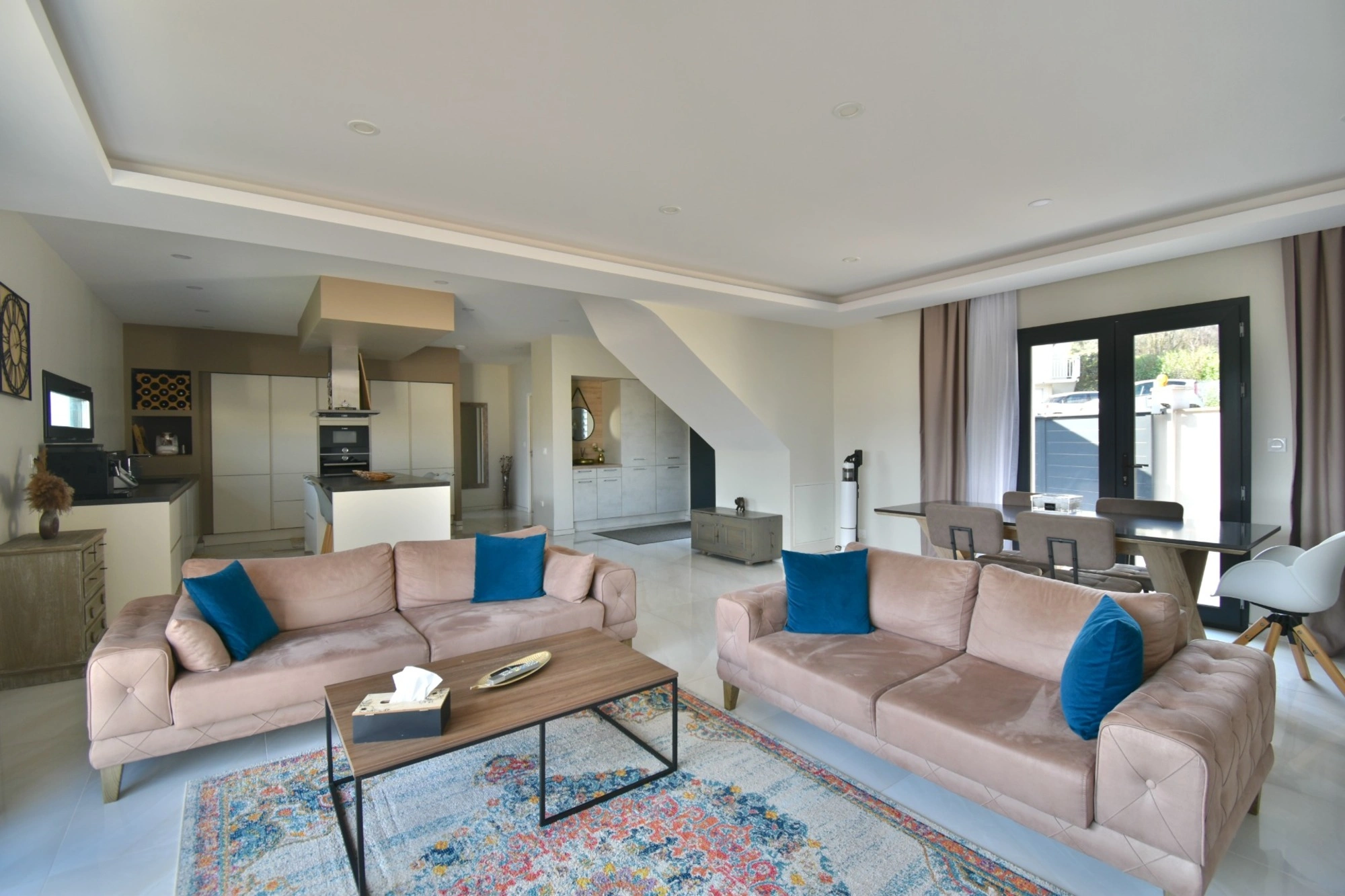 You will surely fall in love with the bright living room of 65 m² with its large windows opening onto the terrace and the nicely landscaped garden equipped with a jacuzzi.