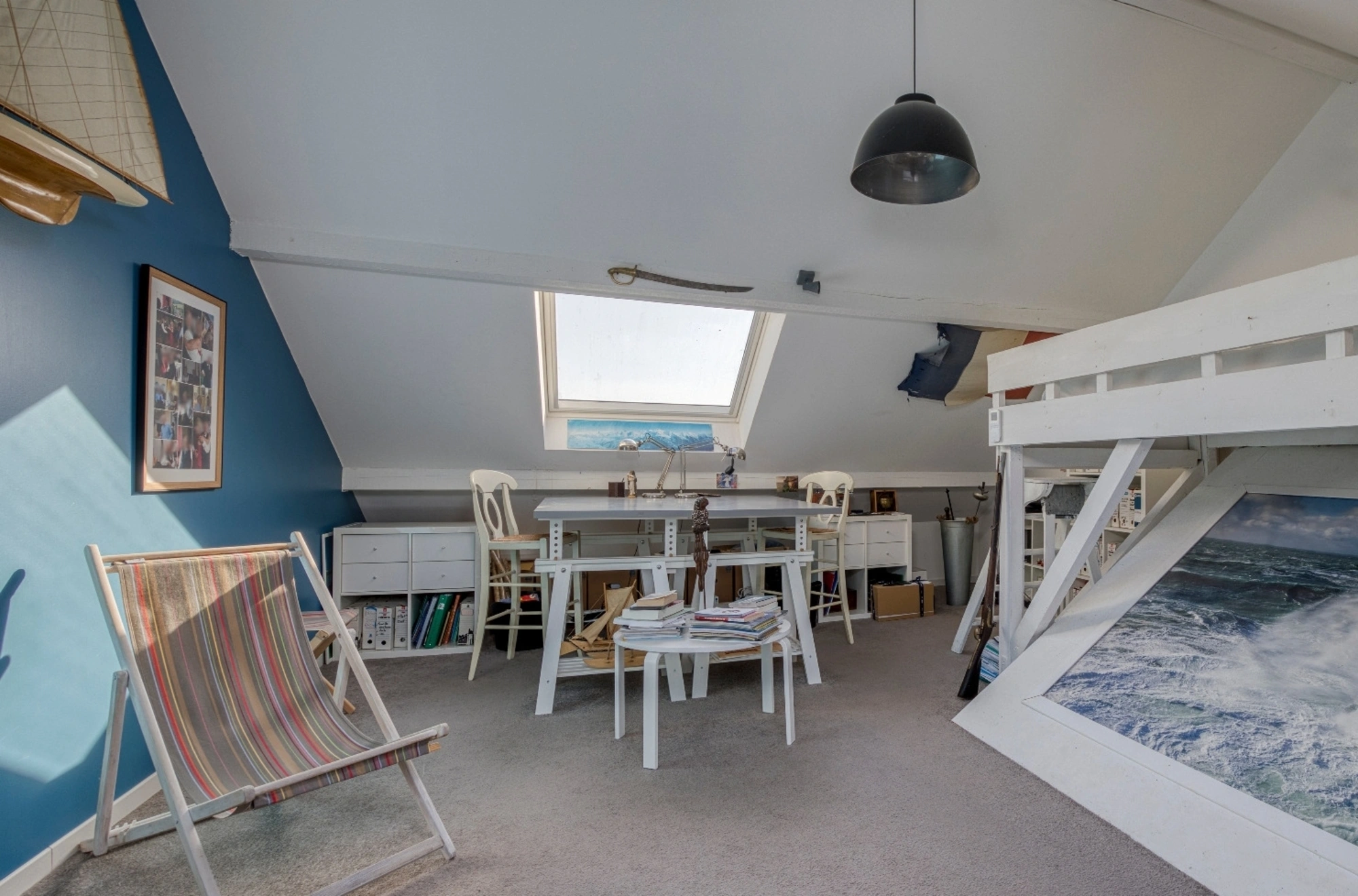 The sleeping quarters are arranged over several split levels: