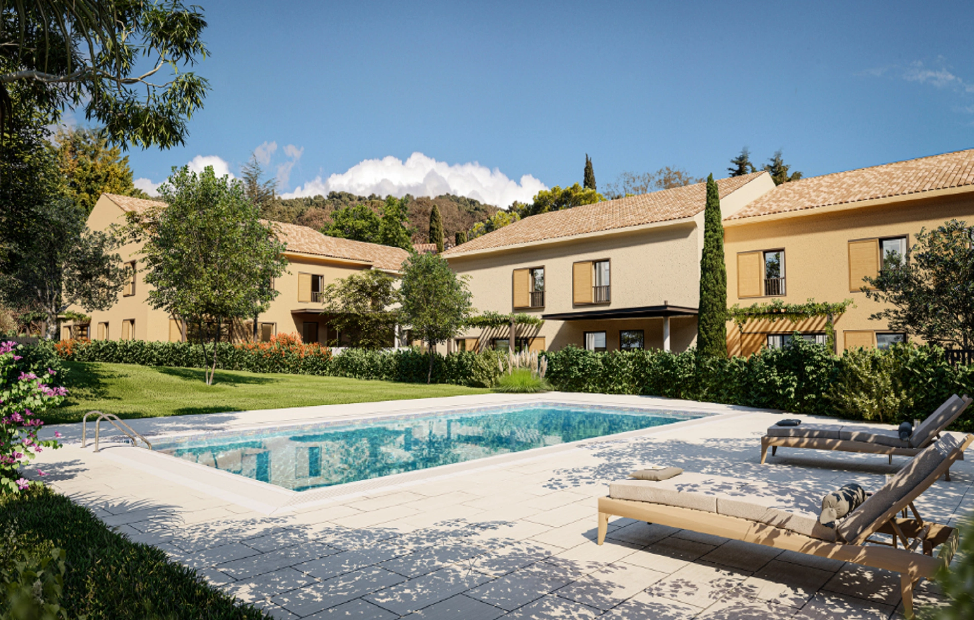 106 m² T4 house with private garden facing south-east – Intimate residence in Luynes, Aix-en-Provence Just 15 minutes from Aix-en-Provence, on the heights of Luynes, discover this intimate residence made up of 20 houses, where charm, luxury, calm and comfort blend together. This 106 m² T4 house, facing south-east, offers an ideal living space in a preserved and green setting, perfect for families and lovers. A spacious and well-designed house Functional and bright, the house has three bedrooms, a large welcoming living room, a bathroom, a shower room and two toilets. Each room has been designed to offer maximum comfort and practicality. The air cooling system ensures pleasant freshness, even during hot summer evenings. A private exterior The house has a private garden of 69.15 m², ideally oriented to take advantage of natural light throughout the day. An adjoining terrace allows you to extend your moments of relaxation outdoors, ideal for al fresco meals. Two covered parking spaces complete this house. A luxury residence avenue The residence, exclusive and peaceful, provides its residents with a private swimming pool, for moments of relaxation in complete serenity. Located close to the amenities of Luynes and the main roads, it provides quick access to the economic and leisure centers of Aix-en-Provence, Plan de Campagne and Marseille. In short, a combination of unique services to fully enjoy an exceptional living environment, combining privacy and communication.