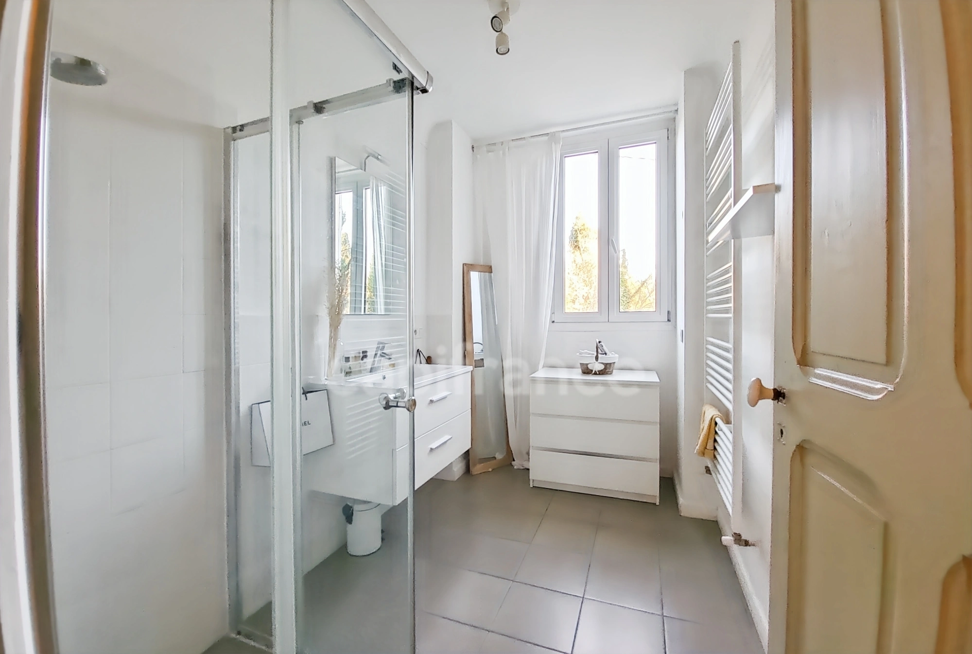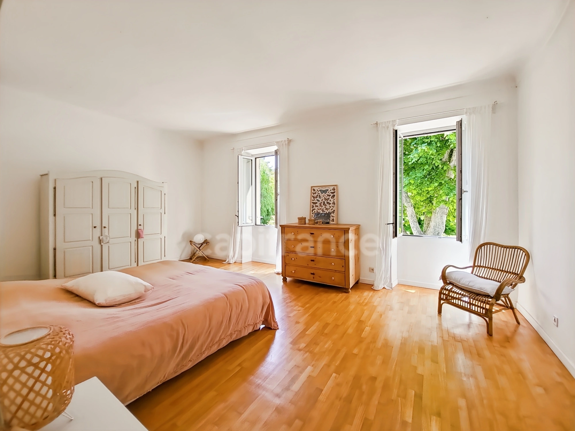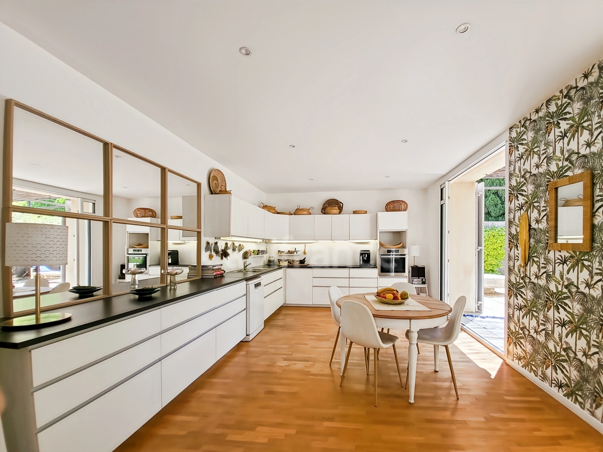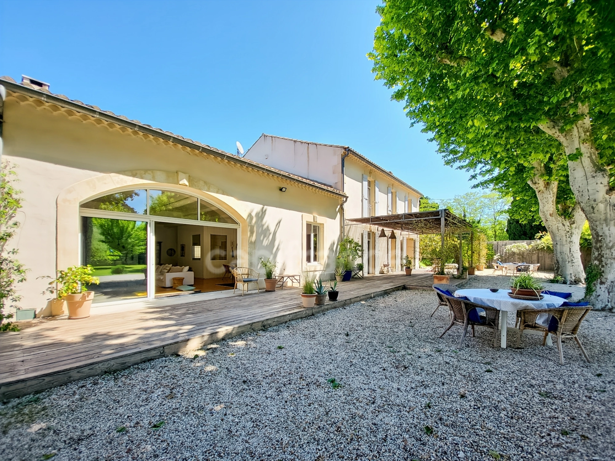 Ce Mas de 1903 vous séduira par ses beaux volumes, ses hauteurs sous plafond, et ses grandes baies vitrées.