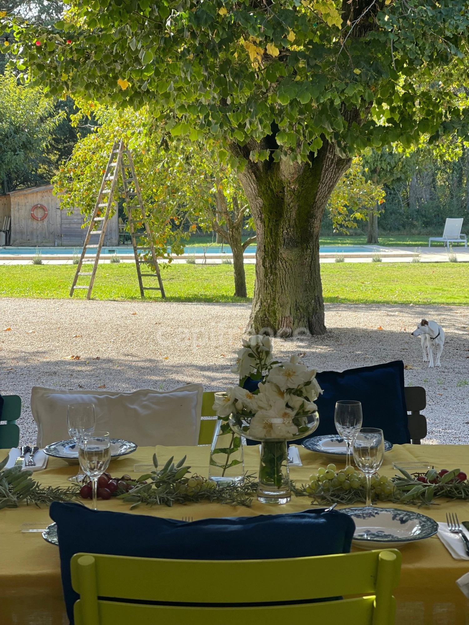 Le Mas est orienté plein sud, offrant une vue imprenable sur les terrasses, le jardin et la piscine.