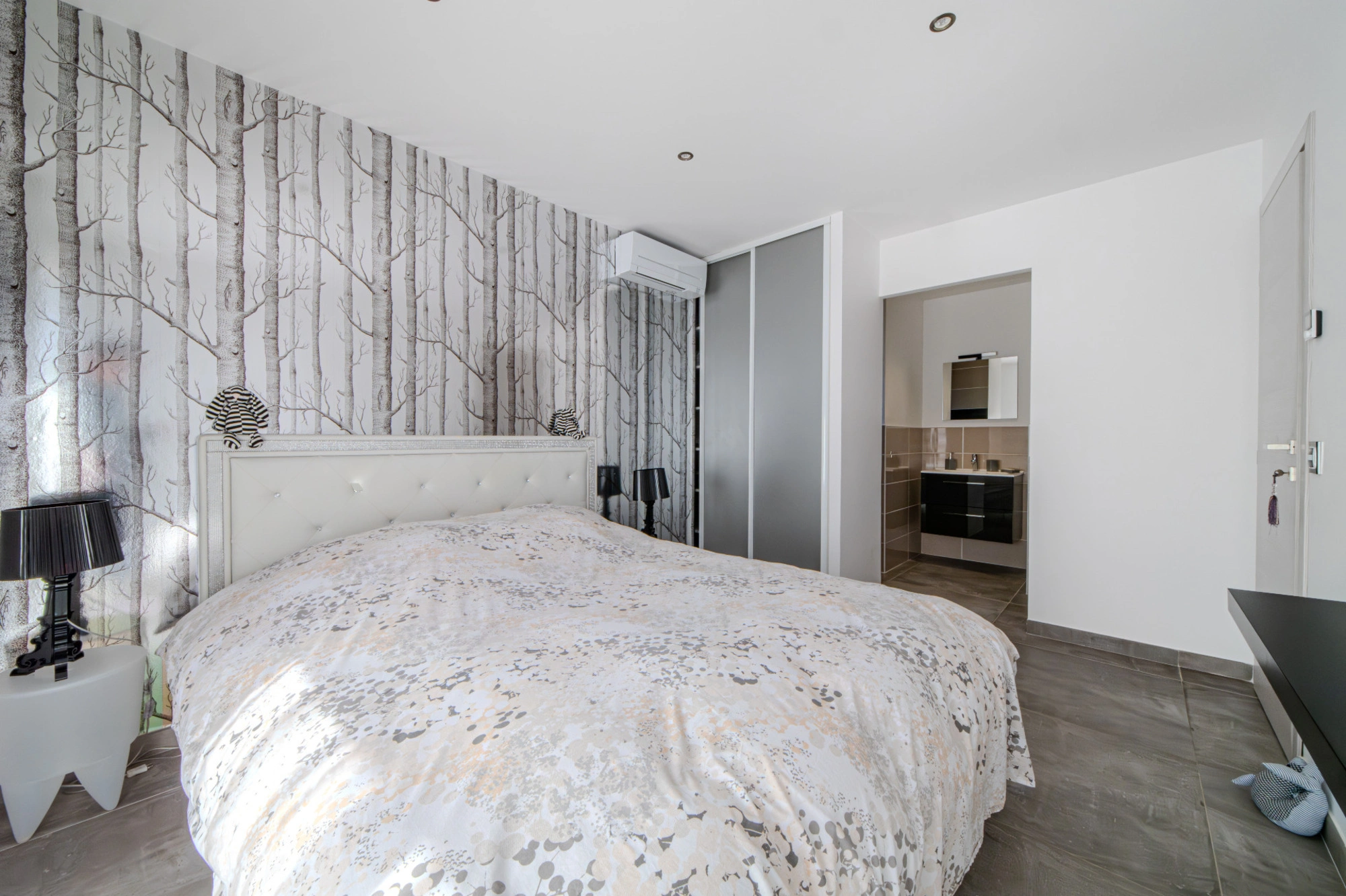 En rez-de-jardin: une superbe suite parentale avec dressing et salle d'eau privative, pour un confort total.