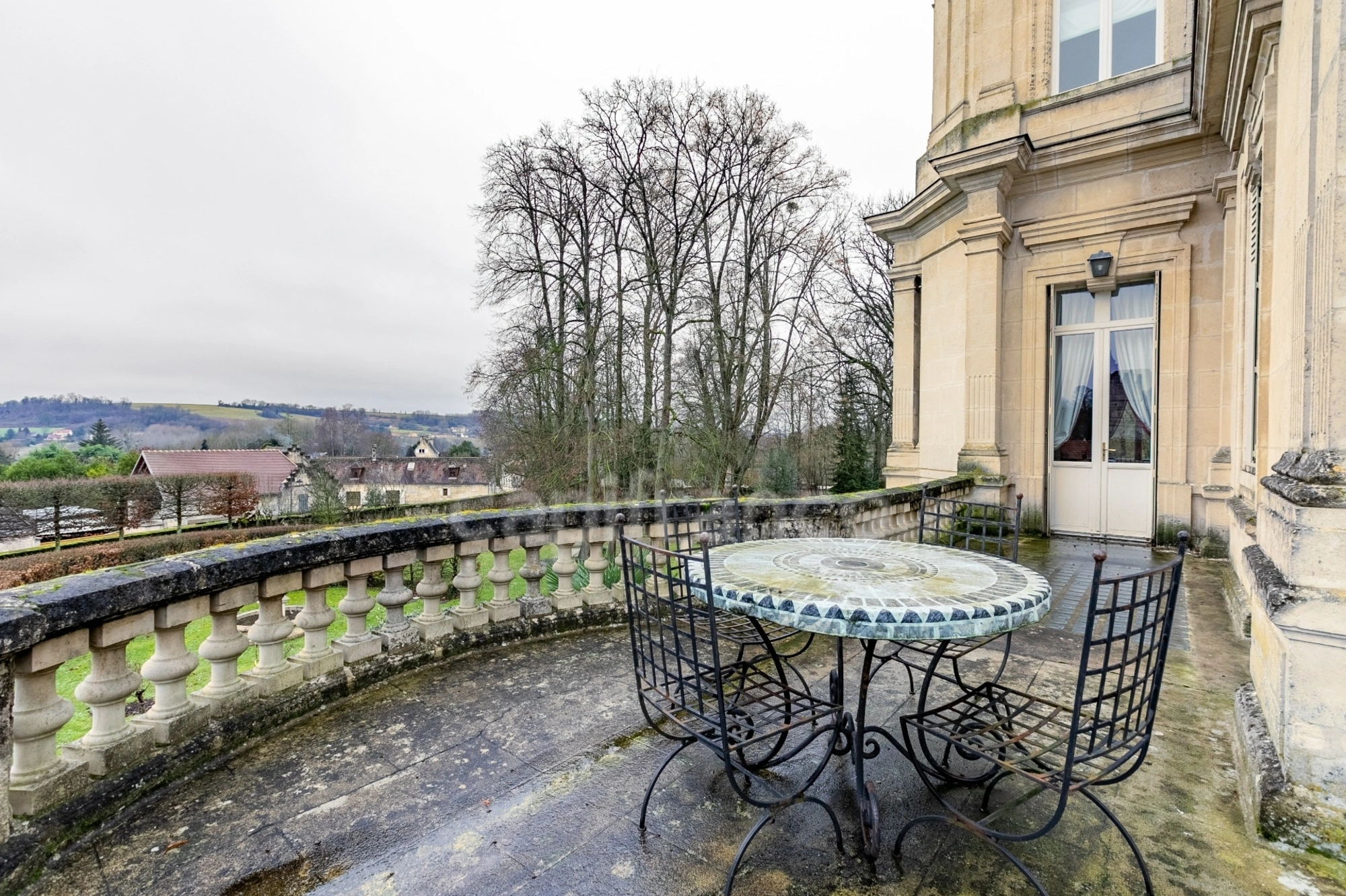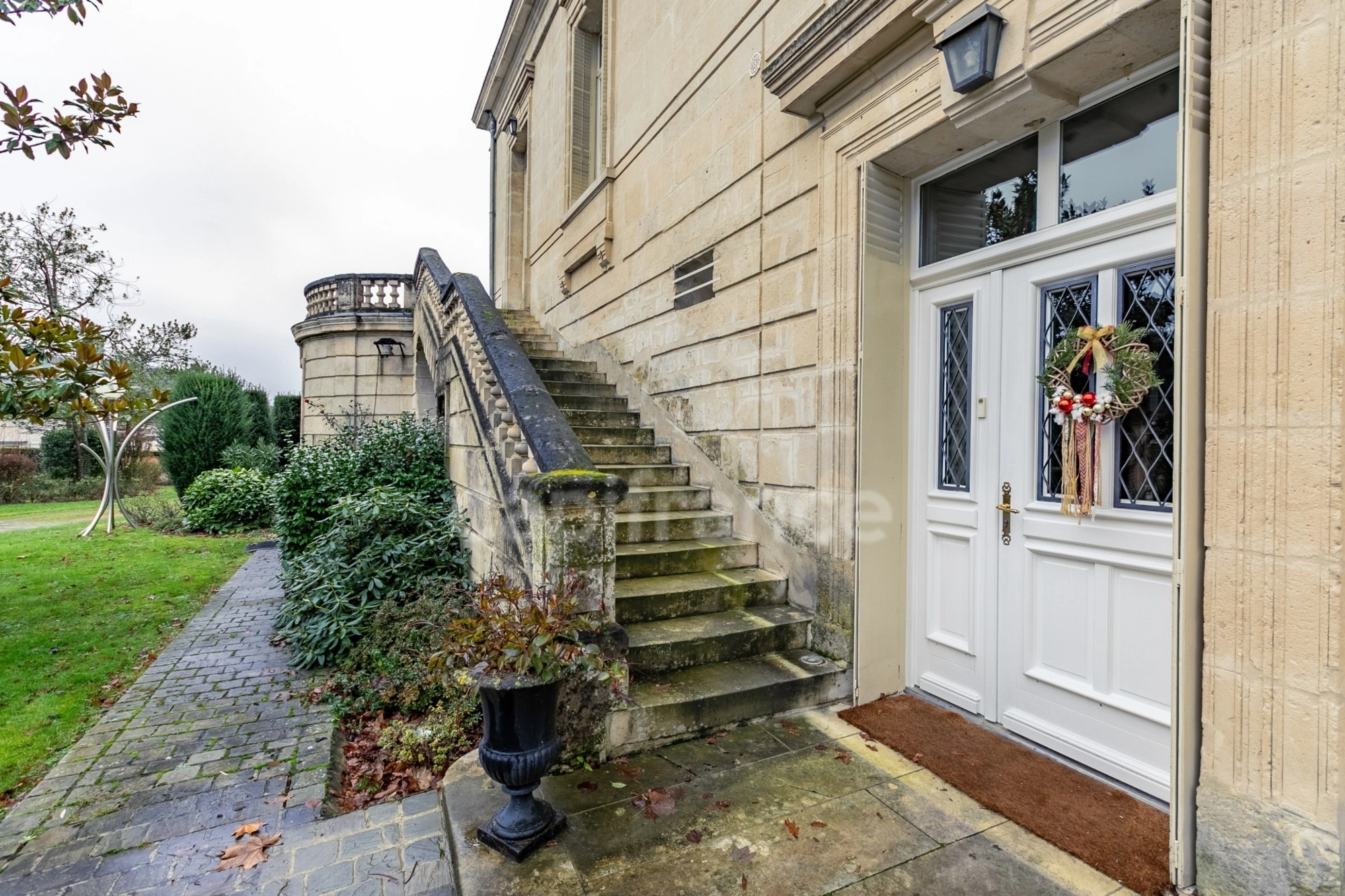 Garage et nombreuses dépendances aménagées, caves et piscine couverte avec terrasses et balcons.